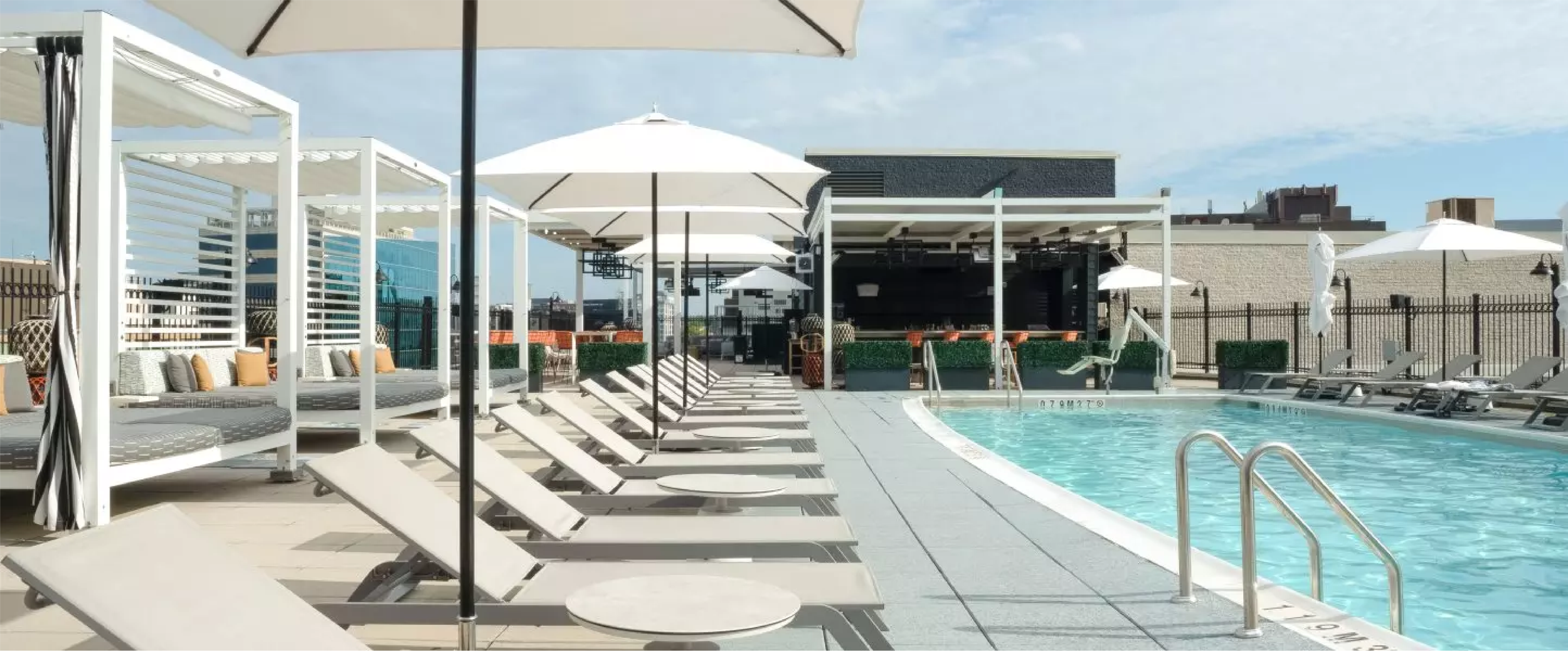 Capacity of 300+ | Rooftop pool + lounge | Full bar & cabana seating